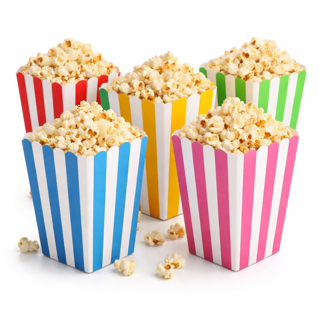 White popcorn boxes are very versatile and used for: